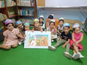 Students enjoyed a storytelling session about Sinulog, one of Cebuโ€™s most cherished festivals, which helped them appreciate local traditions through stories. As a creative follow-up activity, the children made their own Sinulog crowns, allowing them to express their creativity and cultural understanding.